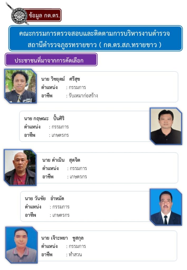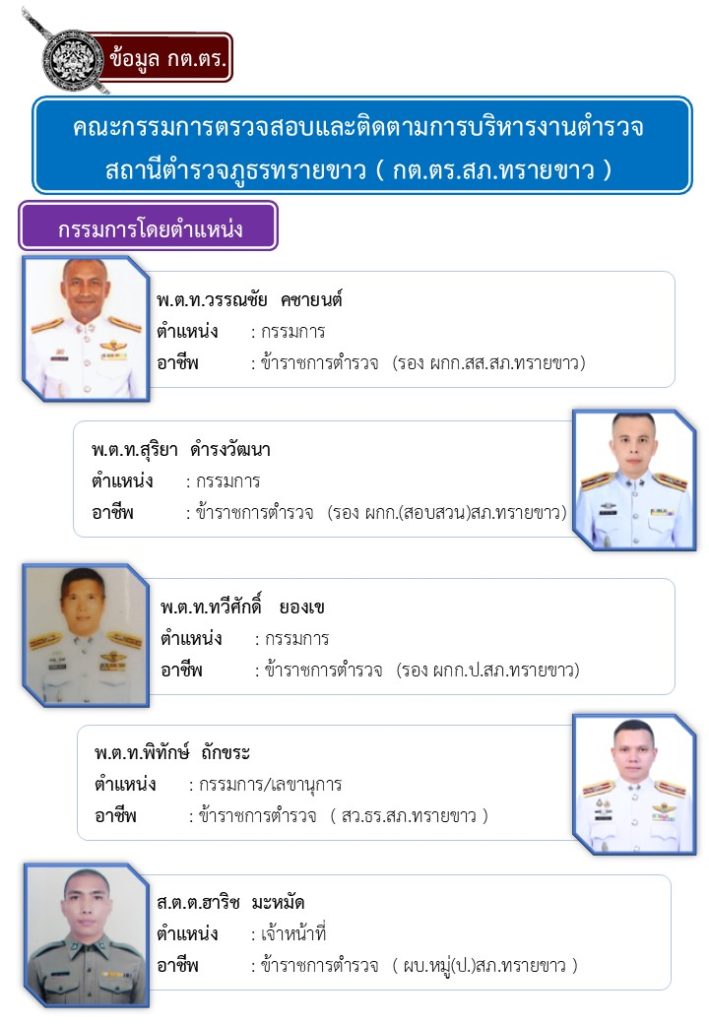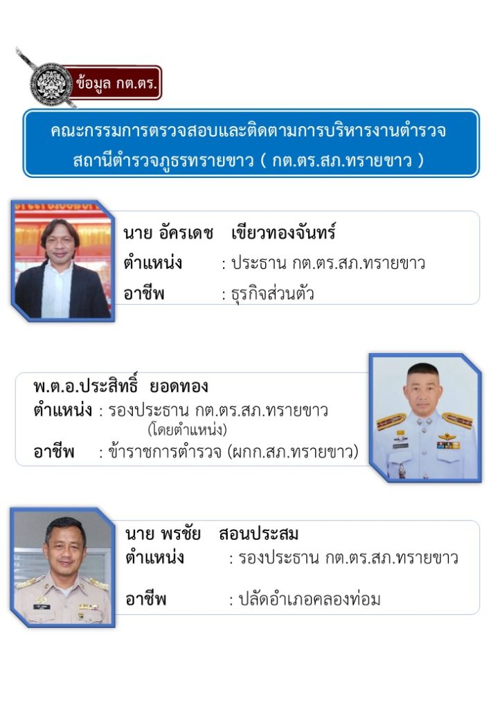 คำสั่งแต่งตั้งกรรมการในคณะกรรมการตรวจสอบและติดตามการบริหารงานตำรวจ ของ สภ.ทรายขาว